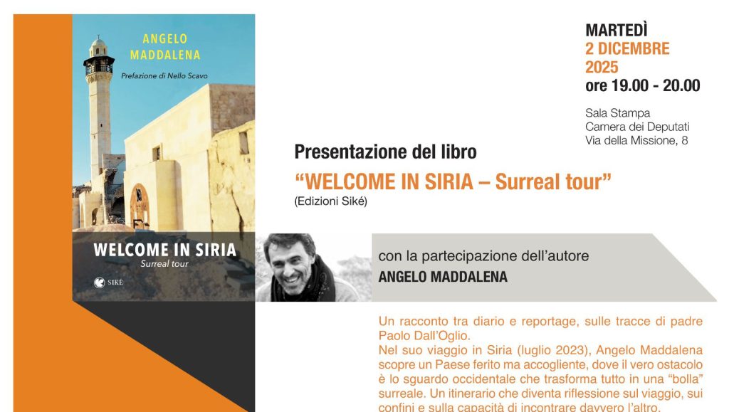 O Deputado Fabio Porta recebe na Câmara dos Deputados a apresentação do livro “Welcome in Siria” de Angelo Maddalena – 2 de dezembro, das 19h00 às 20h00